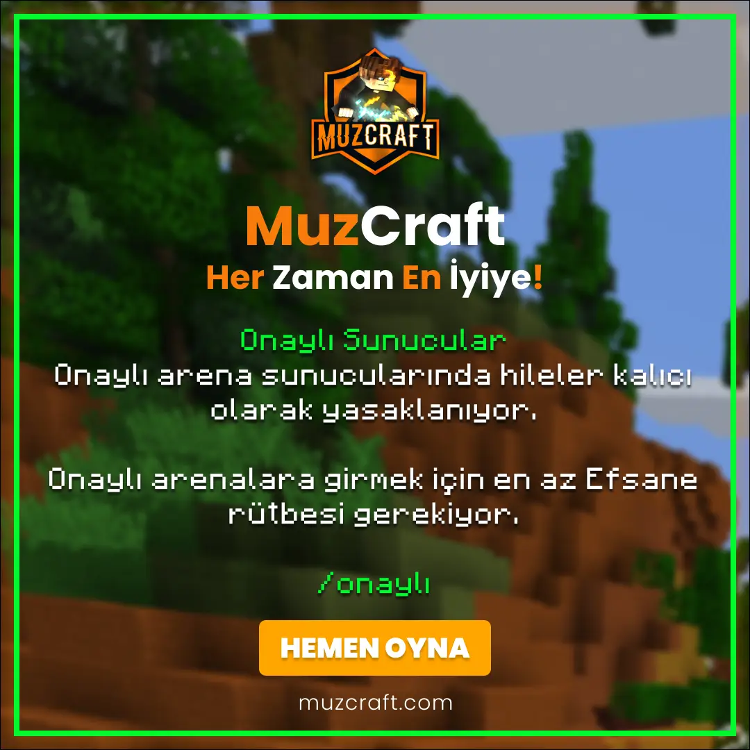 Mutlu Yıllar MuzCraft Ailesi! Bugün saatler 00:00'ı gösterdiğinde, yeni yılına bizlerle girecek tüm özel oyuncularımıza eşsiz etkinlikler düzenleyeceğiz.Etkinlikler Minecraft server & sunucumuzdaki Faction, Survi...