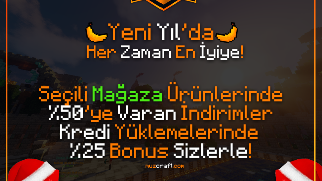 MuzCraft'ta Yeni Yıl İndirim ve Bonusları Başladı! Sitemiz üzerinden 07.01.2021'e kadar yapacağınız alışverişlerinizde %50'ye kadar indirimler ve yapacağınız yüklemelerde %25 Bonus Krediler sizleri bekliyor.Bonus ve indirim...